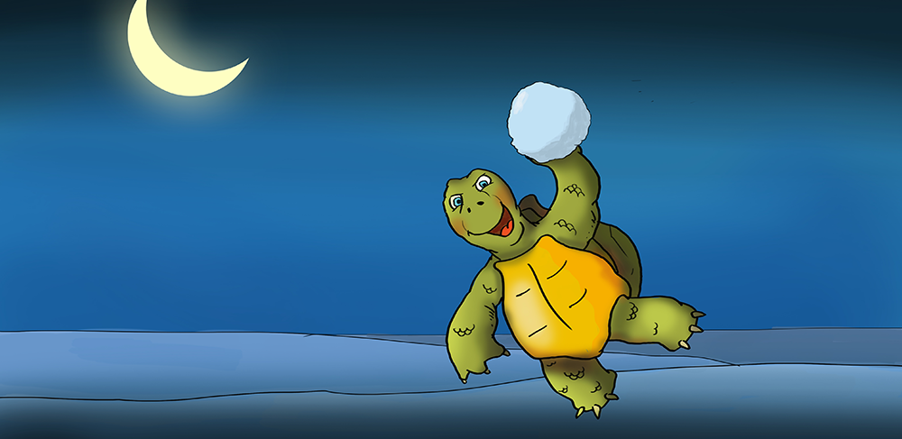 Det lurer jeg også på! Hvor bor egentlig skilpadden? Kanskje i elva? Kanskje i snøen? Kanskje den har funnet seg et hi?